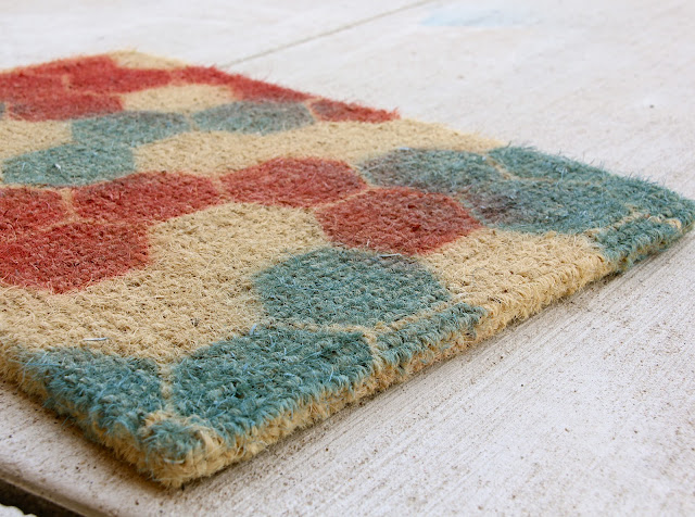 SolidWoodBench has this great tutorial for making a cute hexie stenciled door mat,