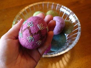 A little inspiration comes from this lovely combination of felt and variegated floss on these Easter eggs by Amy at InTheFold,